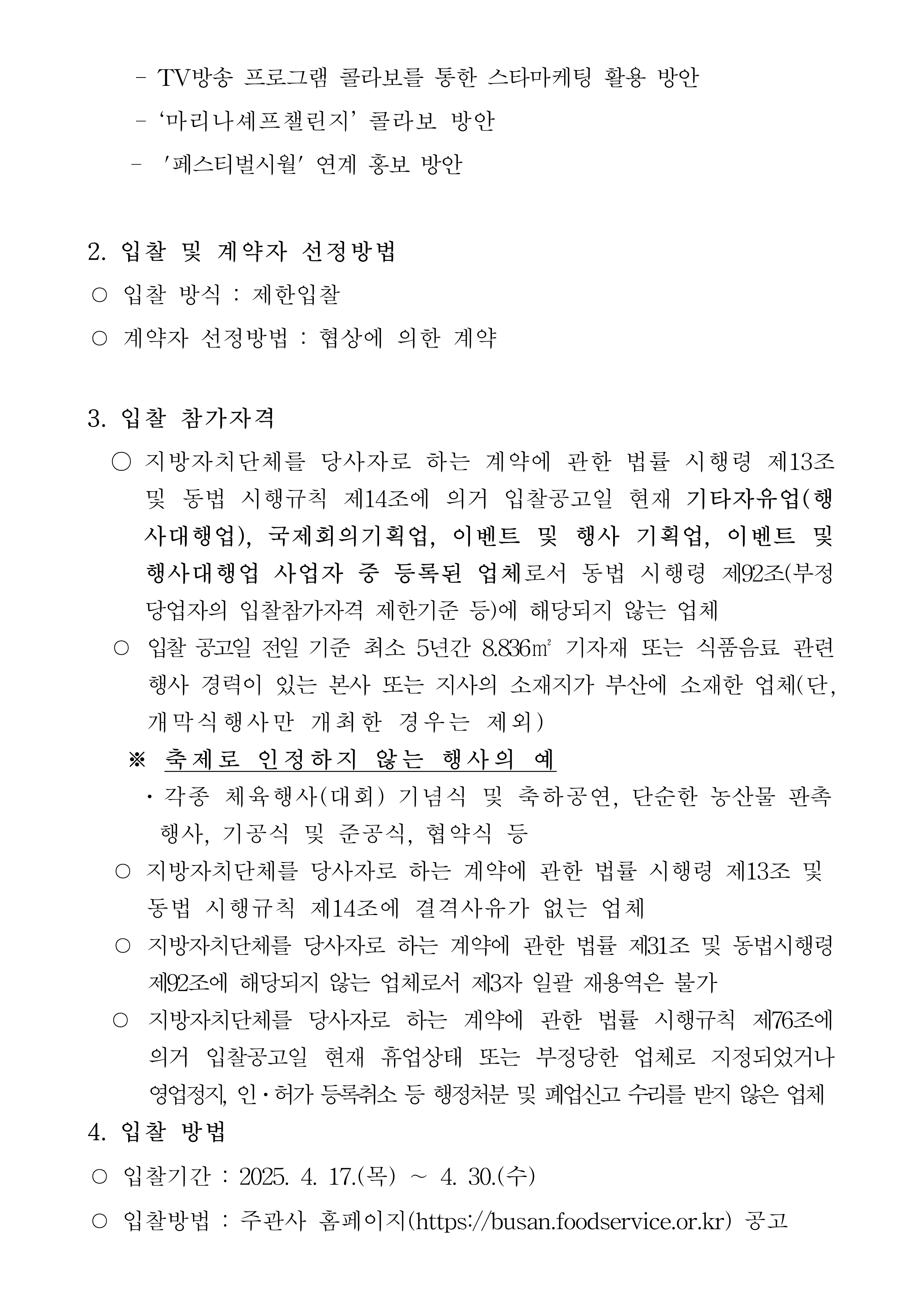 「제19회 부산국제음식박람회」 대행 용역 공모 공고