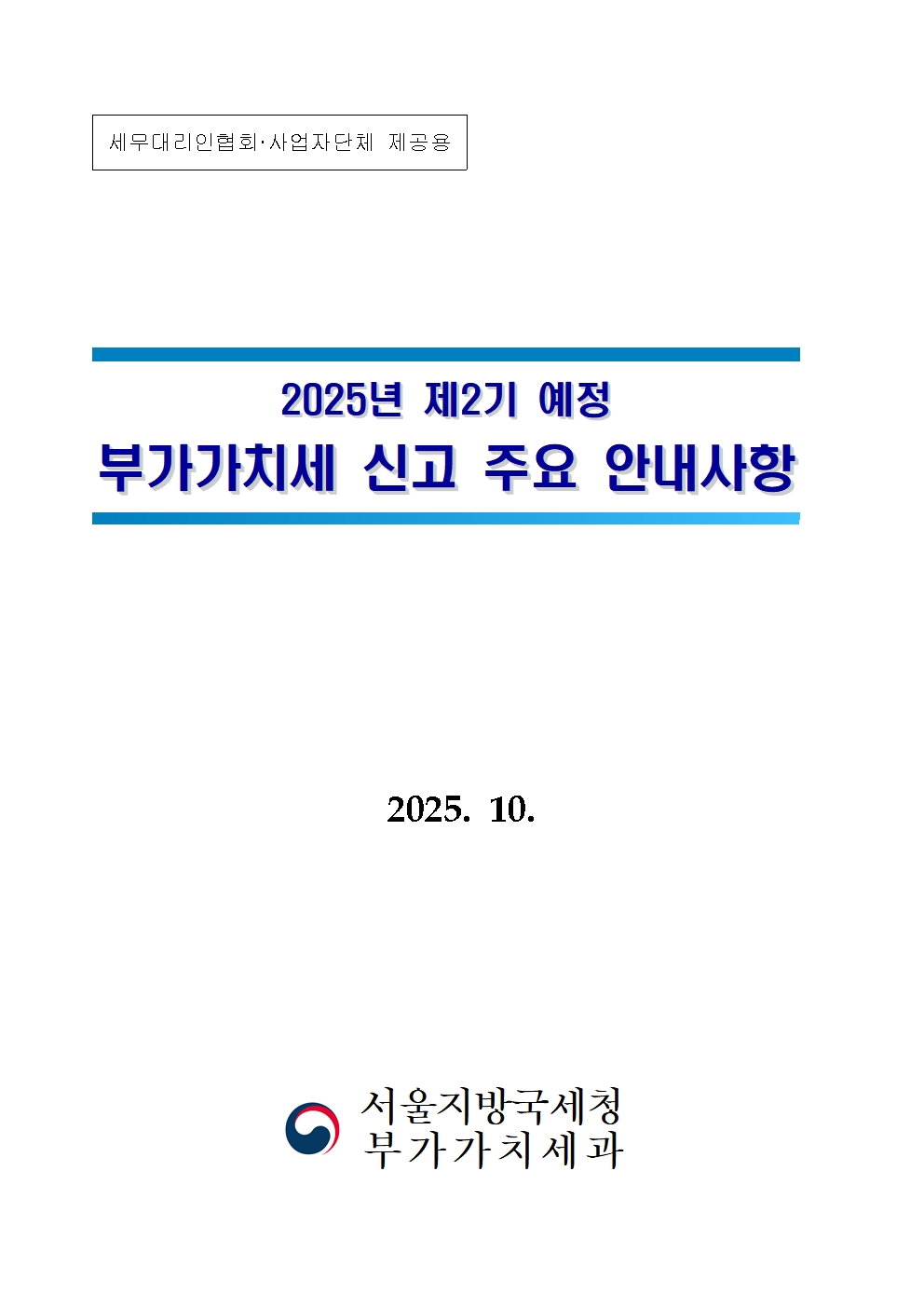 서울지방 국세청에서 2025년 제2기 예정 부가가치세 신고 주요 안내사항을 알려드립니다.