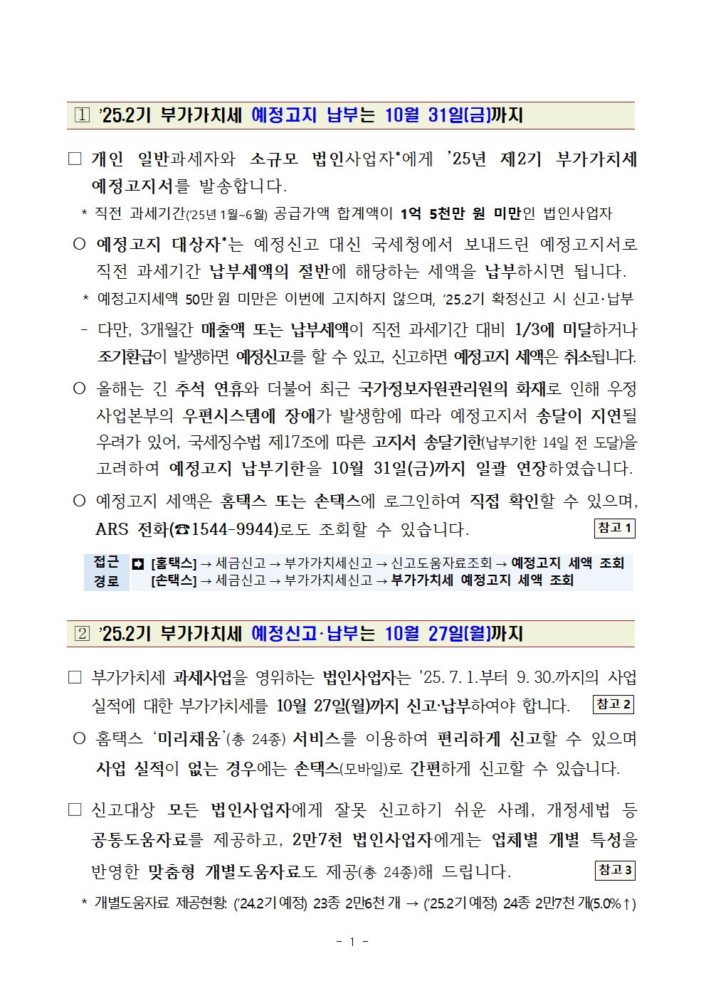 2025년 제2기 예정 부가가치세 신고 주요 안내사항