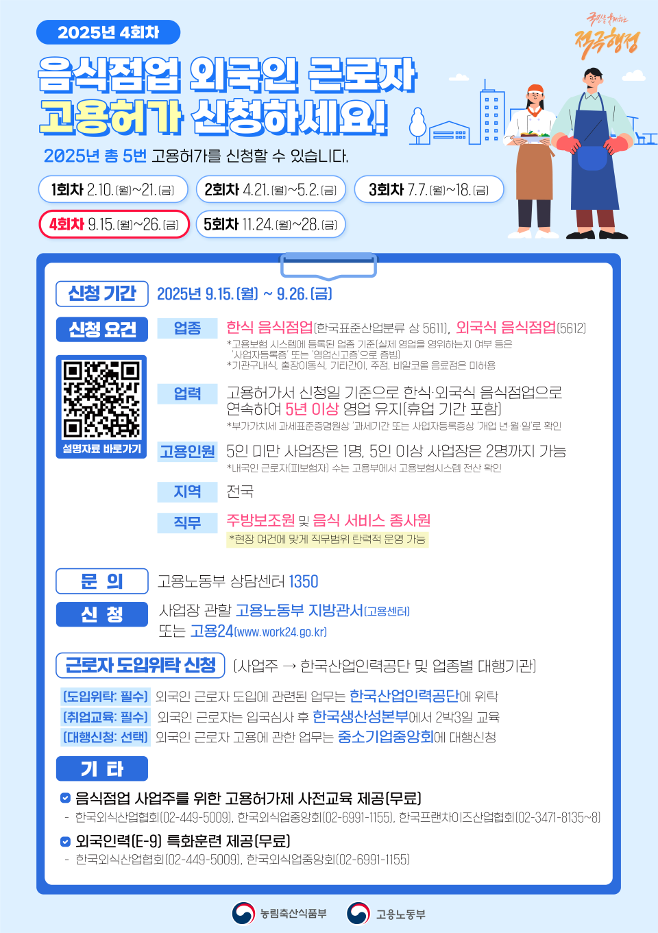2025년 음식점업 고용허가제 4회차 신청 안내