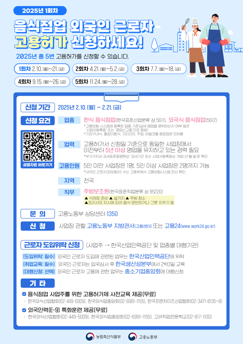 2025음식점업 고용허가제 1회차신청 안내